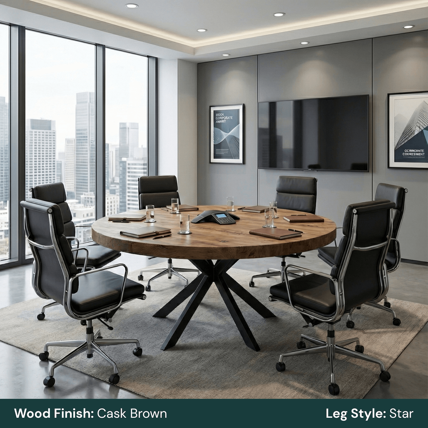 Practical, hard-wearing, and visually confident, the Round Chunky Rustic Meeting Table delivers a professional look with the warmth and authenticity of real wood—built to stand up to daily use and long meetings alike.