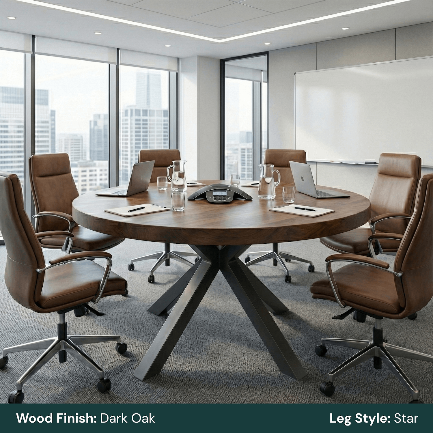 The round shape allows clear sightlines for all participants and makes efficient use of space, particularly in smaller or square rooms. A central steel base provides strong, evenly distributed support while keeping legroom clear around the perimeter.