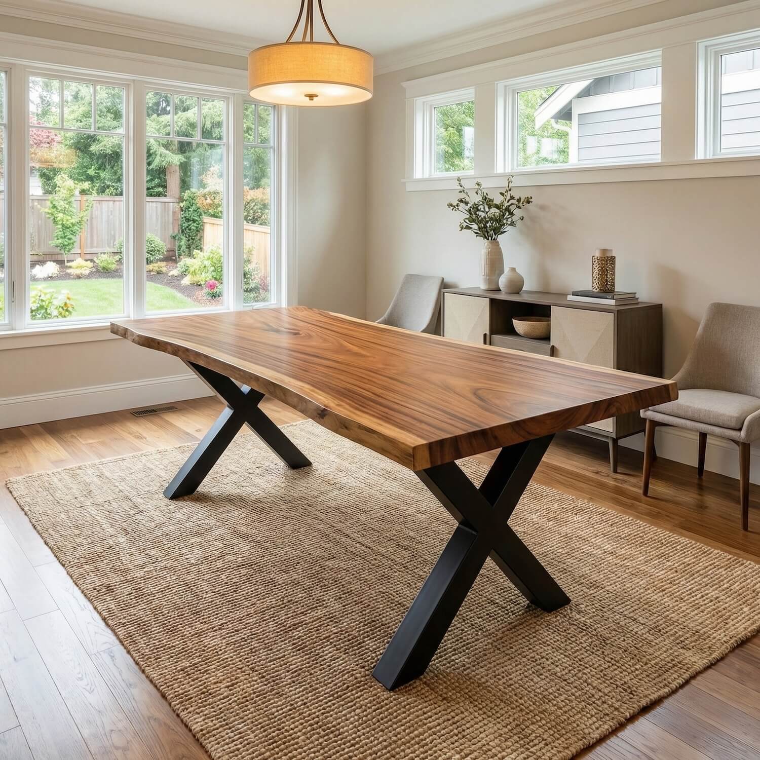 Because of the natural form, measurements are approximate. Length and width vary slightly depending on where the measurements are taken, and widths may differ along the table due to the live edges.
